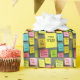 En samling färgglada lappar med diverse påminnelser är fästa på en kontorsvägg
