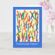 Ett kort med ljusa färgader, med ljus och Grattis på födelsedagen på walesiska, från en handmålad papper kollage av Judy Adamson. Insidan lämnas tom för ditt eget meddelande.