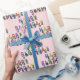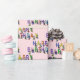 Cute grått-möss med färgstark Grattis på födelsedagen-text på rosans bakgrund. Bakgrund färg kan redigeras.