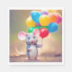 Cute grått-mus med färgad ballongbukett från födelsedagen