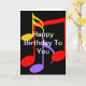 Ljus, djärva Musiknoter i olika färger med vit text Glad födelsedag önskar vi dig.