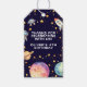 Moderna rymdraket födelsedagspresent taggar för en rolig utomjordisk feststämning för en pojkes födelsedagsfest tagg för presenter. Anpassa namn, datum och information.
