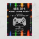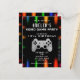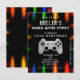 Inbjudan till födelsedagsfest för videospelskontroll. Spelkontroll på levande färgglada neonljus på svart bakgrund.