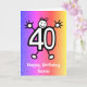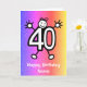 Söt tecknad serie av siffran fyrtio med leende ansikte och händer och fötter. Rolig tecknad serie för 40-åring. Kortet har en färgglad glittereffekt i bakgrunden. Skicka det här kortet för att fira en fyrtioårsdag! Anpassa enkelt detta kort genom att redigera malltexten på framsidan och insidan. Tack för att du tittar på mina designs!