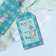 Födelsedagspresentetikett i blå rutiga mönster för presentetikett