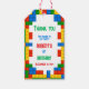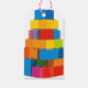 Födelsedagspresentkort för barn med byggkloss-tema presentetikett