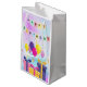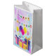 Födelsedagspresentpåse med presenter, slingor och ballonger.