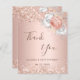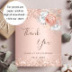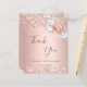 Ett tackkort för en 50-års (eller vilken ålder som helst) födelsedag. En roséguld, roségradientbakgrund. Dekorerad med roséguld och vita blommor och falskt glitter. På framsidan en stor handskriven skrift och texten: Tack, din text, titel och datum.