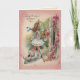 På kortets framsida ser du en ung flicka som går in i ett hem med en massa blommor med en vit hund vid hennes sida. Hon har en helt vit klänning med en stor halmhatt med ett blått band på den. Den lilla vita hund har en rosa böna runt nacke, och huset har en vind med rosa och rödblommor som växer på det. Snygg födelsedag hälsning, med ett vackert budskap. Kolla in det är matchande porto. Alla kortutformningar är minst 55 år gamla och återskapas digitalt under dagens använda.