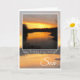 Grattis på födelsedagen Son, vackra, ljusa orangar soluppgång bakom översvämmat moln och mörk träd, med orange och lila flodreflektion. Texten säger: Grattis på födelsedagen till min underbara son. Inuti kortet är tomt.
