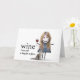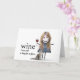 Födelsedagsstickfigur tjej med vin och katt kort