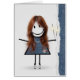Söt stickflicka i blått jeanstänkt klänning som håller i festgnistor på en rivet papperskant med en blå jeanstänkt kant.