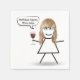 Stickflicka som bär glasögon och har långt blont hår håller ett vinglas för födelsedagsfirande på vit bakgrund. Bakgrundsfärgen kan ändras.