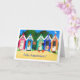 Ett födelsedagkort med "grattis på födelsedagen" i portugis och någon strand förlägga i barack från en handpainted papper collage av Judy Adamson. Jag kan lätt ändra beklädatexten på begäran, och insidan är vänstersida som är tom för ditt egna meddelande.