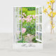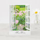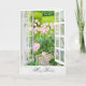 Öppna fönstervyn vår blomsterträdgård för födelsedag