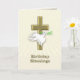 Ett födelsedagkort med välsignelser. En guld- kor och en duva av fred.