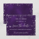 Spara datumkortet glamoröst i 50:e (eller i vilken ålder som helst) födelsedagsfest. Ojämnt fördelad lila färgad. Dekorerad med faux silver glitter-gnistor. Texten: Spara datumet skrivs med ett stort trendig-handskript i stil.