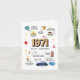 Ta en resa tillbaka till 1971. Perfektens födelsedag för Mamma, Pappa, Make eller frun... Gör sin födelsedag oförglömlig med ett unikt kort som vrider tillbaka klockan till 1971! Det här är inte bara ett hälsningskort, det är en tidskapsel full av minnen, roligtar och en hjärtlig hyllning till ett verkligt speciellt år. Designat med en charmerande vintage är detta kort fyllt av vackra tidbitar från 1971: 🎶 Genomsnittsinkomst och befolkning 🛒 Priser för gas, livsmedel och vardagsartiklar 💡 noterbara uppfinningar och världshändelser 👶 Det mest populära barn namn på året. Det är en roligt, informativ keepy som säkert kommer att utlösa leenden, historier och kanske till och med några överraskningar. Oavsett om det är för Mamma, Pappa, Make, frun eller någon som firar en milstolpe-födelsedag, är detta kort ett tänkbart sätt att fira sin resa och hedra den värld de föddes in i. Mer än bara ett födelsedagskort är det en meningsfull gåva, en minnesfil i resa ner och en påminnelse om hur långt de har kom och hur nära de är. Inuti födelsedagskortet: och många, många fler!