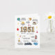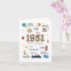 Ta en nostalgisk resa till 1951 - Perfektens födelsedag för Mamma, Pappa, farmor eller farfar. Gör att deras födelsedag blir oförglömlig med ett unikt kort som vrider tillbaka klockan till 1951! Det här är inte bara ett hälsningskort, det är en tidskapsel full av minnen, roligtar och en hjärtlig hyllning till ett verkligt speciellt år. Designat med en charmerande vintage är detta kort fyllt av vackra tidbitar från 1951: 🎶 Genomsnittsinkomst och befolkning 🛒 Priser för gas, livsmedel och vardagsartiklar 💡 noterbara uppfinningar och världshändelser 👶 Det mest populära barn namn på året. Det är en roligt, informativ keepy som säkert kommer att utlösa leenden, historier och kanske till och med några överraskningar. Vare sig det är för Mamma, Pappa, mormor, farfar eller någon som firar en milstolpe-födelsedag, är detta kort ett tänkbart sätt att fira sin resa och hedra den värld de föddes in i. Mer än bara ett födelsedagskort - det är en meningsfull gåva, ett minneskort i resa och en påminnelse om hur långt de har kom och hur nära de är. Inuti födelsedagskortet: och många, många fler!