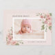 Födelsekort med blommor. Stilrent och modernt med eleganta akvarellrosor i rosaton och grönska på en ljusrosa bakgrund. Anpassa enkelt med ditt foto, namn och år. Baksidan har ett andra foto med text för att lägga till ett meddelande.