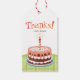 Födelselsedagstårta i rosa med ett ljus presentetikett
