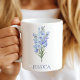 Anpassade kaffemuggar är fantastiska presenter till dig själv eller andra! Månadens blomma är en fin födelsedagspresent eller brudtärna present. Juli månads blomma är den vackra blå delphinium. För att anpassa din kaffemugg, klicka bara "Anpassa denna design", ange namnet och Zazzle tar hand om resten.