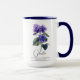 Födelsemånadsblomman februari Violet personlig mugg med en illustration av violetta blommor. Det anpassade namnet skrivs i ett typsnitt av snyggten ovanför blommorna. Under namn står stater "februari - Violet", som anger att födelsemånaden är februari och att födelseblomman är bruten. Det är en charmerande mugg, skräddarsydd som en speciell gåva till någon född i februari.