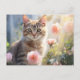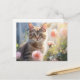 Vacker digital akvarellkatt med rosor vykort. Ömtåliga ljusrosa rosor för sommarfunktionen på detta vackra blomsterkort, det perfekta kortet för de som är födda i juni eftersom rosor är deras födelseblomma!