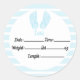 Födelsemeddelande, blå babyskor runt klistermärke