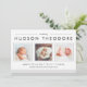 Lägg märke till att ditt söta babe kommer med vårt moderna kollage stil tillkännagivande för födelse, med neutralt, med tre av dina favoritfoton i kvadratiskt format, accentuerade med moderna typsnitt och stripe inslag i grått och skarp svart. Anpassa födelsestatus och familjebudskap med baby namn med hjälp av det fält som tillhandahålls.