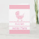 Födelsemeddelande om rosa och Vita Baby Barnvagn Kort