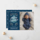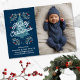 Sprid julhälsning och annonsera din nya ankomst med vårt "God Jul"-födelsekort! Det här fina kortet har en charmerande bild av Julgran med snöflingor, poinsettias, festiva botaniska ämnen och ett sött rån. Den prydliga texten "Vår lilla jultomte", som anger perfekten för din baby i första julhelgen, är överlagd på den här festbilden. Paletten elegant blå färg kompletterar säsong. Anpassa kortet med ett foto av ditt nyfödda lodrät och lägg till namn, födelsedatum och vikt under texten "Inledning". På baksidan kan du skriva ett hjärtligt budskap till dina kära. Perfekt baby meddelande för julhelgen, underbar för en flicka, pojke eller gender-neutralt-kort.