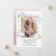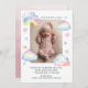 Välkomna din lilla vän till världen med det här fantastiska födelseannonskortet! Den här eleganten är försedd med fluffa moln, stjärnor och regnbåge i mjuk vattenfärg stil och skapar en seren och drömmande atmosfär för att visa nyföddas ankomst. En färglös, söt och modern estetik. Anpassa kortet med ett lodrät porträtt-foto av baby och redigera enkelt textmallarna för ett anpassningsbar nyfödd bebis-meddelandekort.