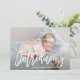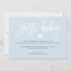 Det här ljuva födelsemeddelandet och snyggtens födelsemeddelandekort innehåller nyföddas foto på framsidan, tillsammans med ett modernt handskript som säger "introduktion" där du kan lägga till ditt nyfödda baby namn. Det finns en plats för ett personligt budskap och baby födelseinformation på ljusblått bak, tillsammans med mer trendig manustypografi som säger "Hej, baby".