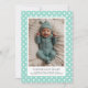 Meddela er lilla annons i stil med detta vackra prickkort! Den här moderna designen har en lekfull mönster av färgstarkt polka dots i akvatisk bakgrund. Det är perfekten att presentera din nyaste familjemedlem med lite roligt och personlighet. Anpassa det här kortet med ett foto av ditt nyfödda lodrät porträtt och redigera sedan textmallarna för ditt eget meddelande från anpassningsbar baby.
