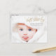 Täckiga guld-stjärnor faller runt ett sött baby (anpassa med ditt eget nyfödda foto) med "hej, söt pojke" i finare guld i glitter-effektskript (lägg märke till att ingen egentlig guld glitter eller löv kommer att tryckas på pappra - den kommer bara att tryckas ut för att se ut som guld glitter). Detta vykort för födelsetillkännagivande är enkelt, chic och sött, och manuset tillför en elegant. Användan bild i baby på en mjuk vit bakgrund, så texten kommer att vara läsbar och stjärnorna kommer att framträda. Om du vill, glöm inte att kolla baksidan, där du kan ladda upp ett foto av baby i en roligt som är uppdelad i polaroida ram och lägga till ett personligt hjärtslitande meddelande till vykortet!