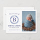Modern och enkel monogram/baby blue tillkännagivande för födelse för krans!