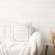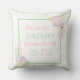 Födelsetalen Flicka Blommigt Dekorativ kudde. Blommigt monogram med födelsestatistik på framsidan och sött blommönster med ro, knoppar, bär, löv på baksidan. Pastel färg (skuggor av rosa, grönt, koral, lera, lila, blått, gult). Grönt gräns.
