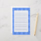 Enkla blått tonar brevpapper med ett bakgrundsgränsmönster av rutiga diamanter för blått. Handstilområde centrerar in är fodrat och halv-genomskinligt med bakgrundsmönstervisning igenom.