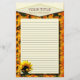 Ljus gul solros mot ett orange bakgrundsmönster av solrosor. Fodrad anpassadebrevpapper med område på bästa för titel och undertext -- eller välj din egna text för att skriva in.