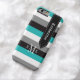 Detta personligsvart, vit, turkosblått och fodral för grå färgFodral-Kompis beställnings- iPhone 6 har sned boll sätta en klocka på görat randig bakgrundsmönster och ett svart banerband med vit som syr att du kan tillfoga ditt namn, initialer, monogramen eller annan text till. Detta moderna och moderiktiga nya fodral gör ett chic påstående för höftbarnfashionistaen! Om du behöver hjälp, e-posten niteowlstudio@gmail.com.