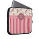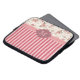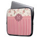 Detta fodral presenterar ett rosa- och krämromönster med randar och en monogram i centrera.