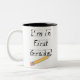 Fodrat papper och ritar den första klassen Två-Tonad mugg