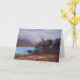 Hälsningskort med bilden av en målning av Vicki Coe Mitchell av Crystal Vår Boathouse i dimma.