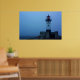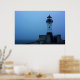 Den norra pierfyren i Duluth Minnesota på en foggy Morgon