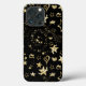 Modern foil guld snurrande stjärnor och hjärta över svart bakgrund