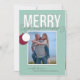 Anpassa den! Ändra fotot och namn till ditt eget! Vintage inspirerade helgdag-fotokort, ett par prydnadsföremål hänger från frasen "God jul".