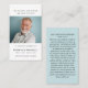 Ett enkelt begravningserbjudande. Lägg till ditt favoritfoto, klassisk typografi används. På baksidan av kortet finns den bön som kan anpassas för att täcka en dammig blå bakgrund.