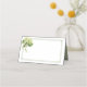 This folded name place card is shown in basic white with a lovely green hydrangea bouquet and an accent frame in a color of sage.