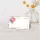 This folded name place card is shown in basic white with a lovely vivid color's floral bouquet with an accent frame in a color of orange.